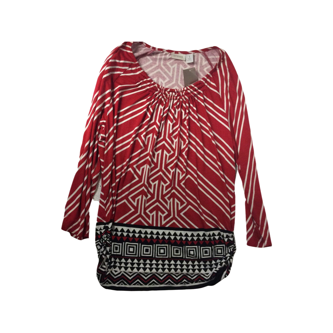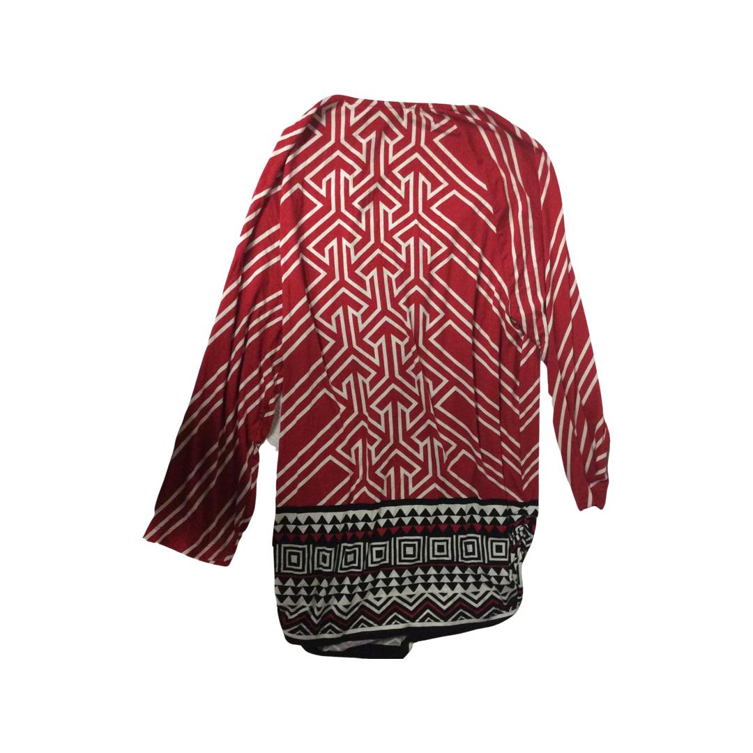 Scarlet Border Garth 3/4 sleeve top in Scarlet Sun
