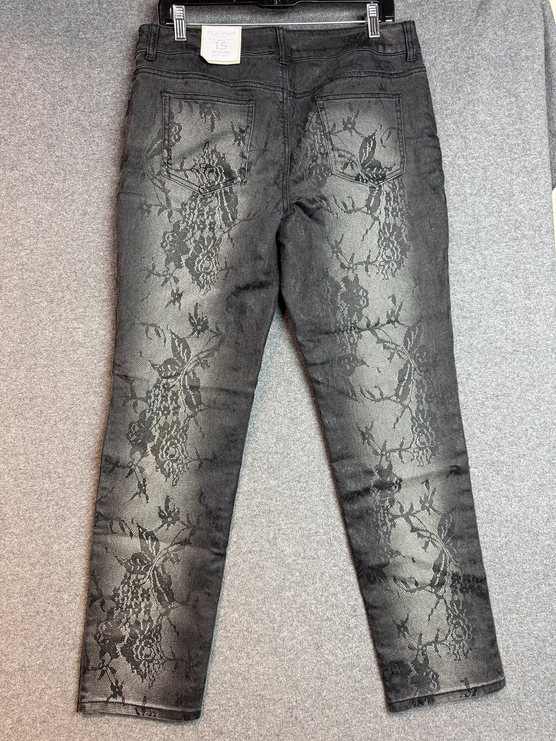 Chico's Platinum Denim Coated Lace Jeans Slim Leg 1.5 - Used