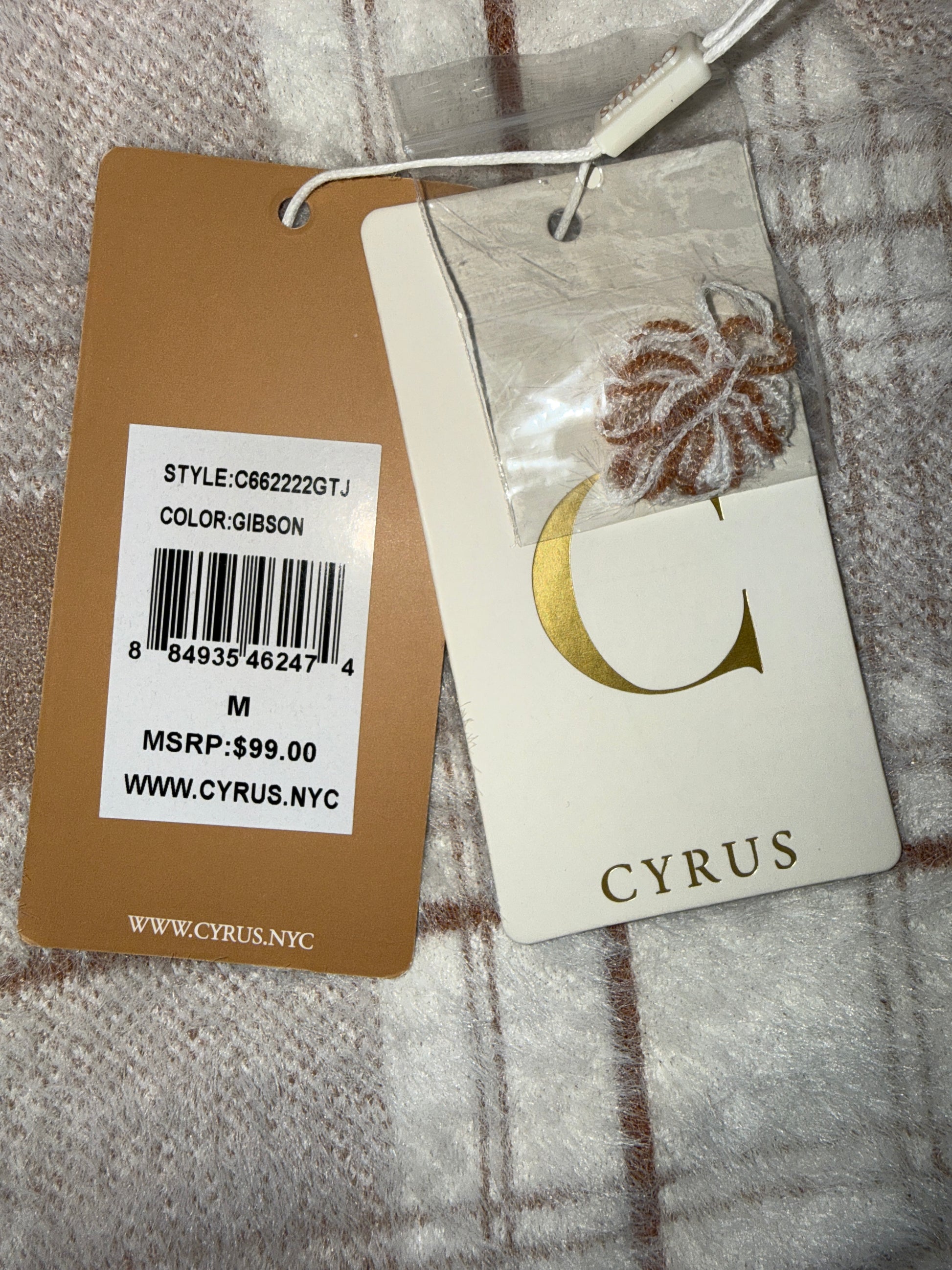 Cyrus Fuzzy Pullover Sweater Hamilton Windowpane White Beige - Used