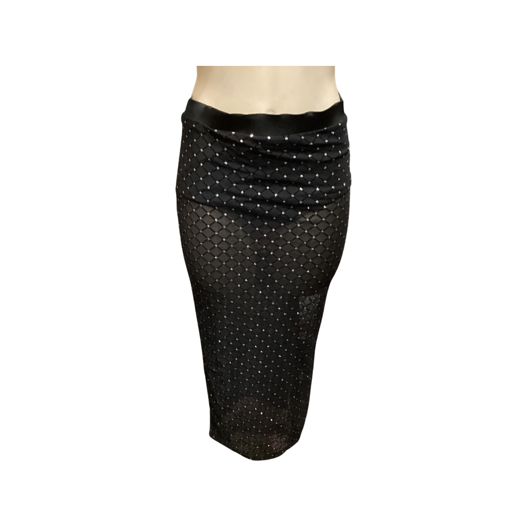 Women's sheer skirt with silver dots of glitter, beatrix mesh skirt.