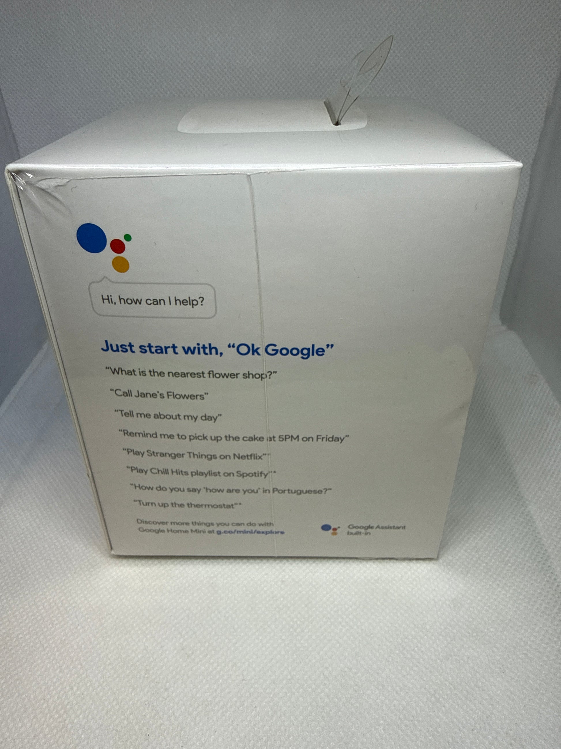 Google Home Mini Smart Speaker in the Chalk - light gray - 1st Generation - Used - Unopened