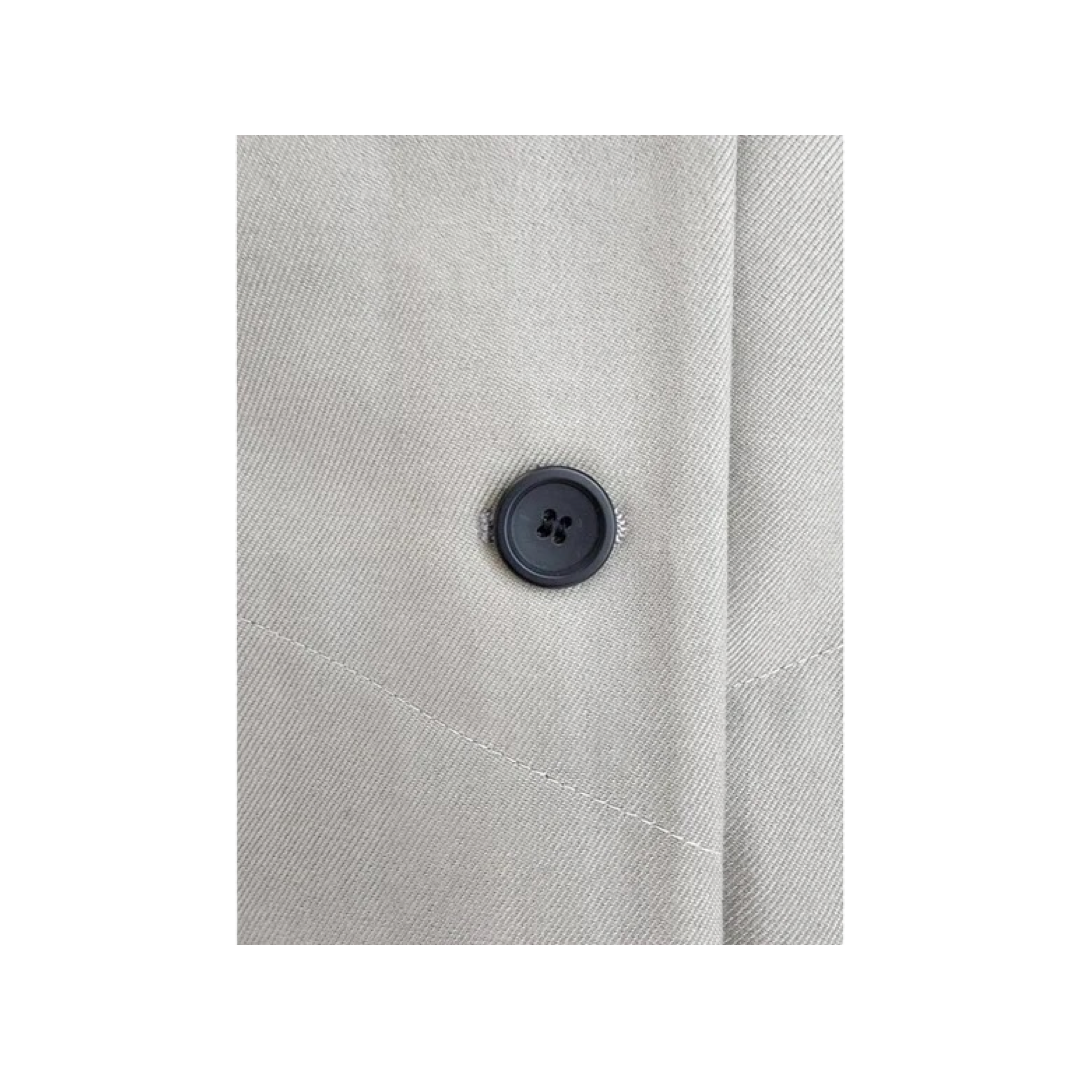 Oversized sleeveless trench coat knee length, buttons.