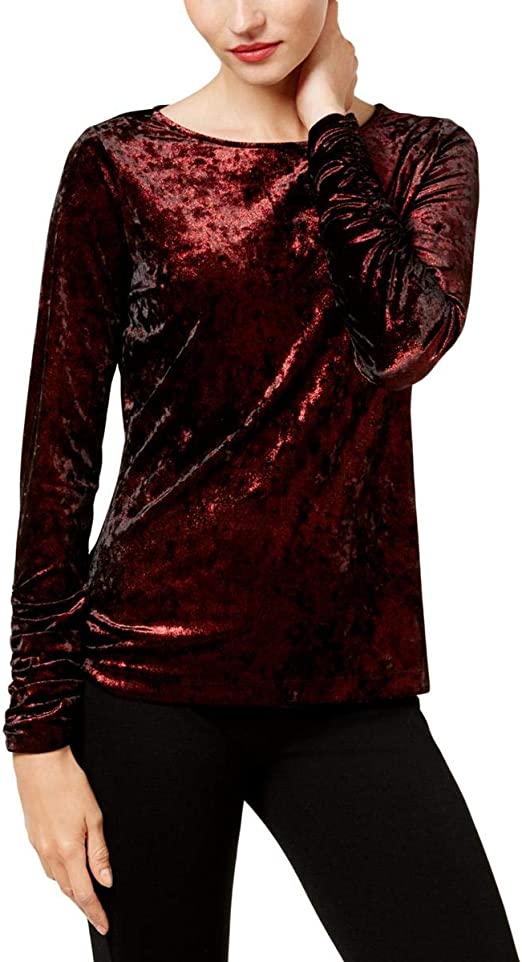 Vince Camuto Womens Velvet Metallic Pullover Top Red XS